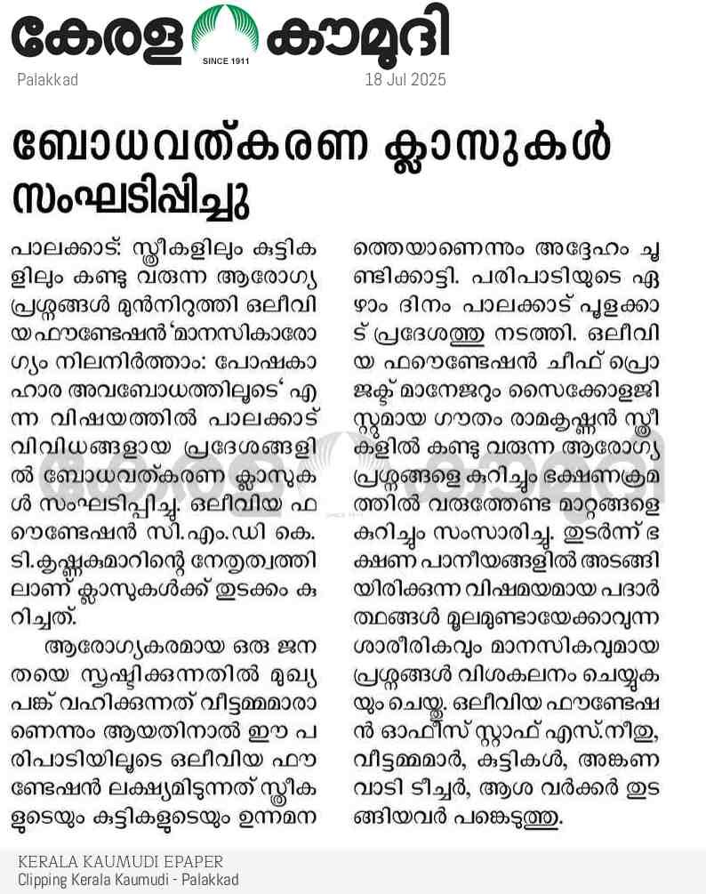 “Food for Thought” Nurturing Healthier Minds at Erattayal