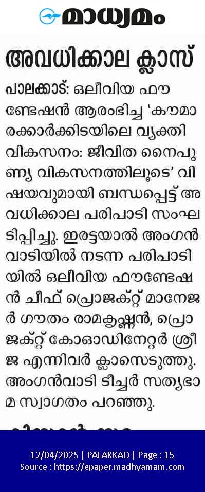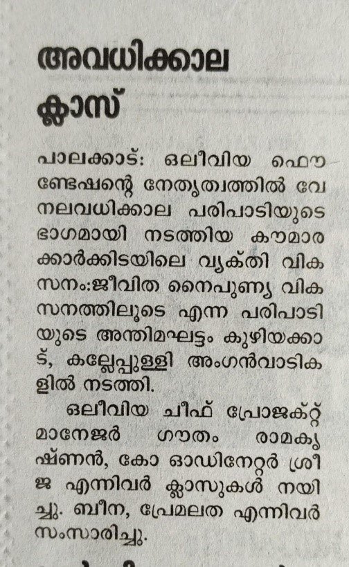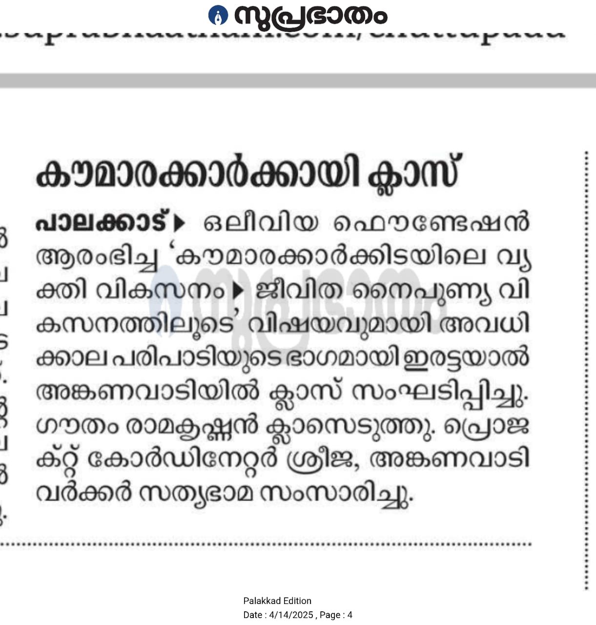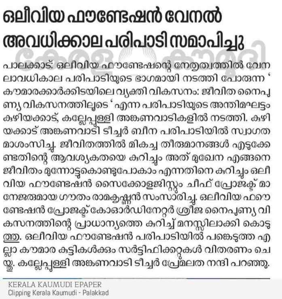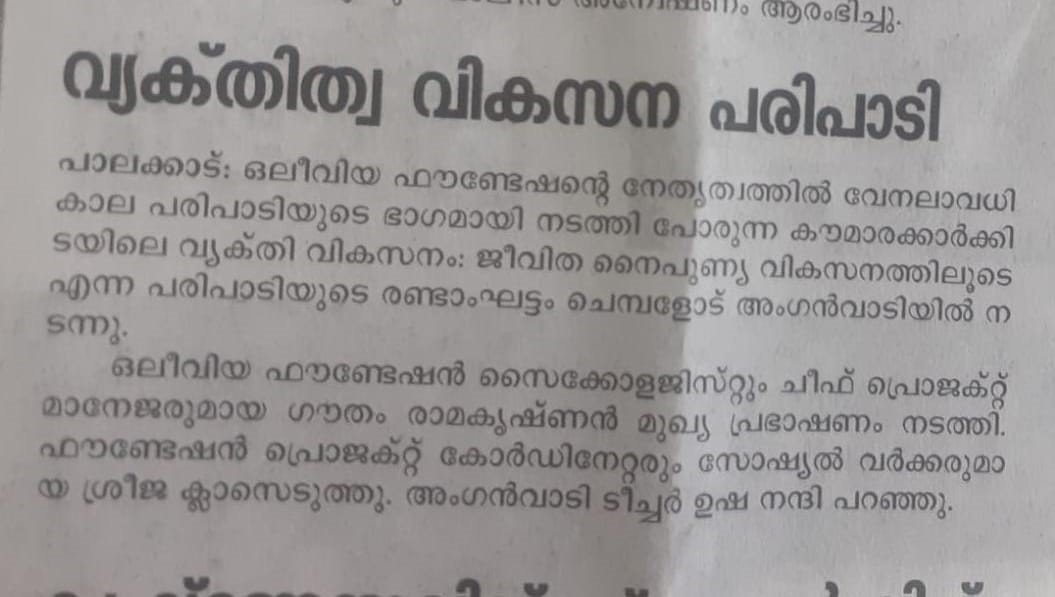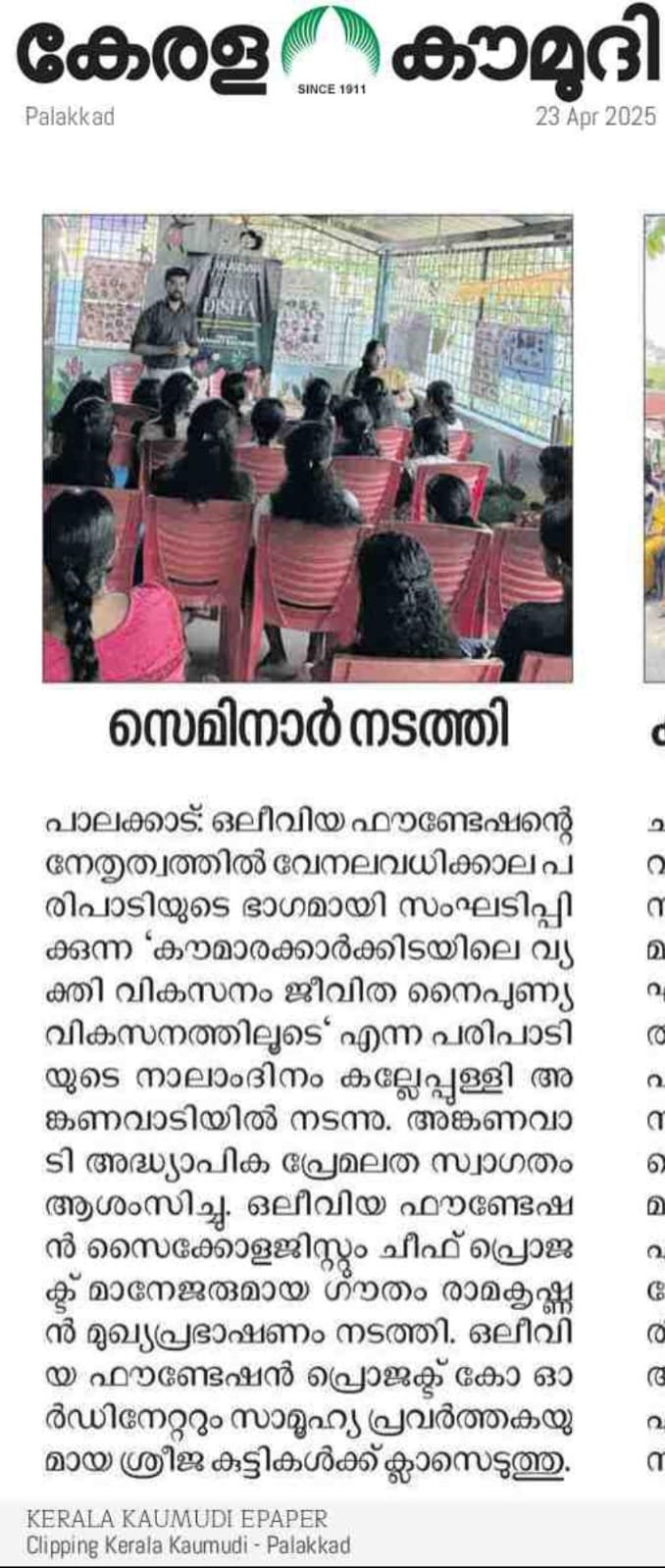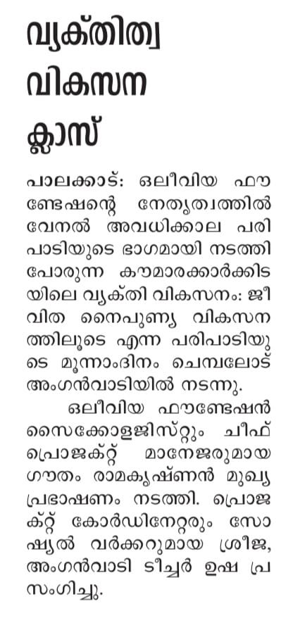 Rise with Life Skills- Session at Polakkad Anganwadi News