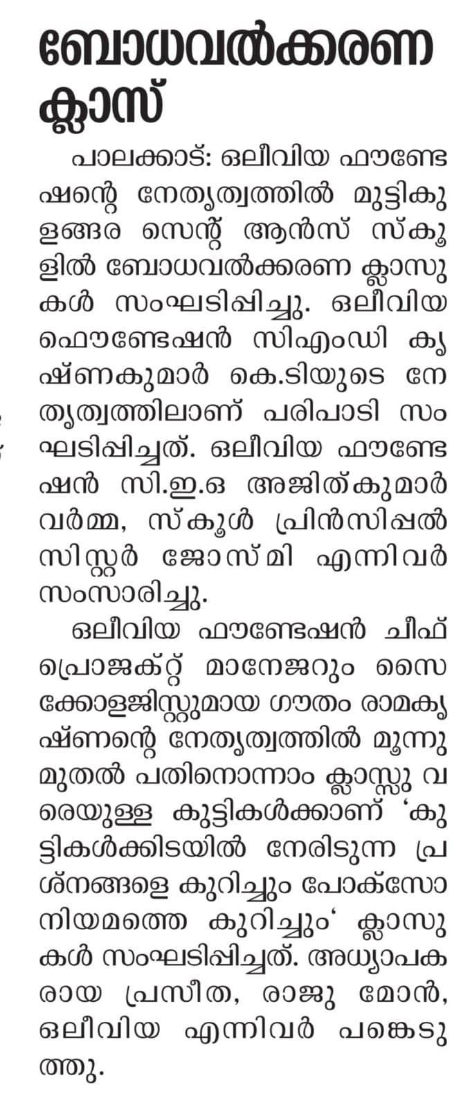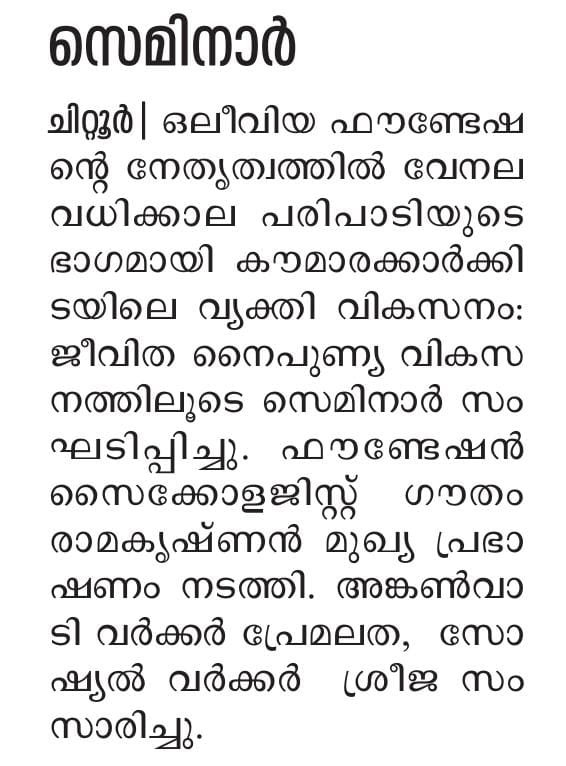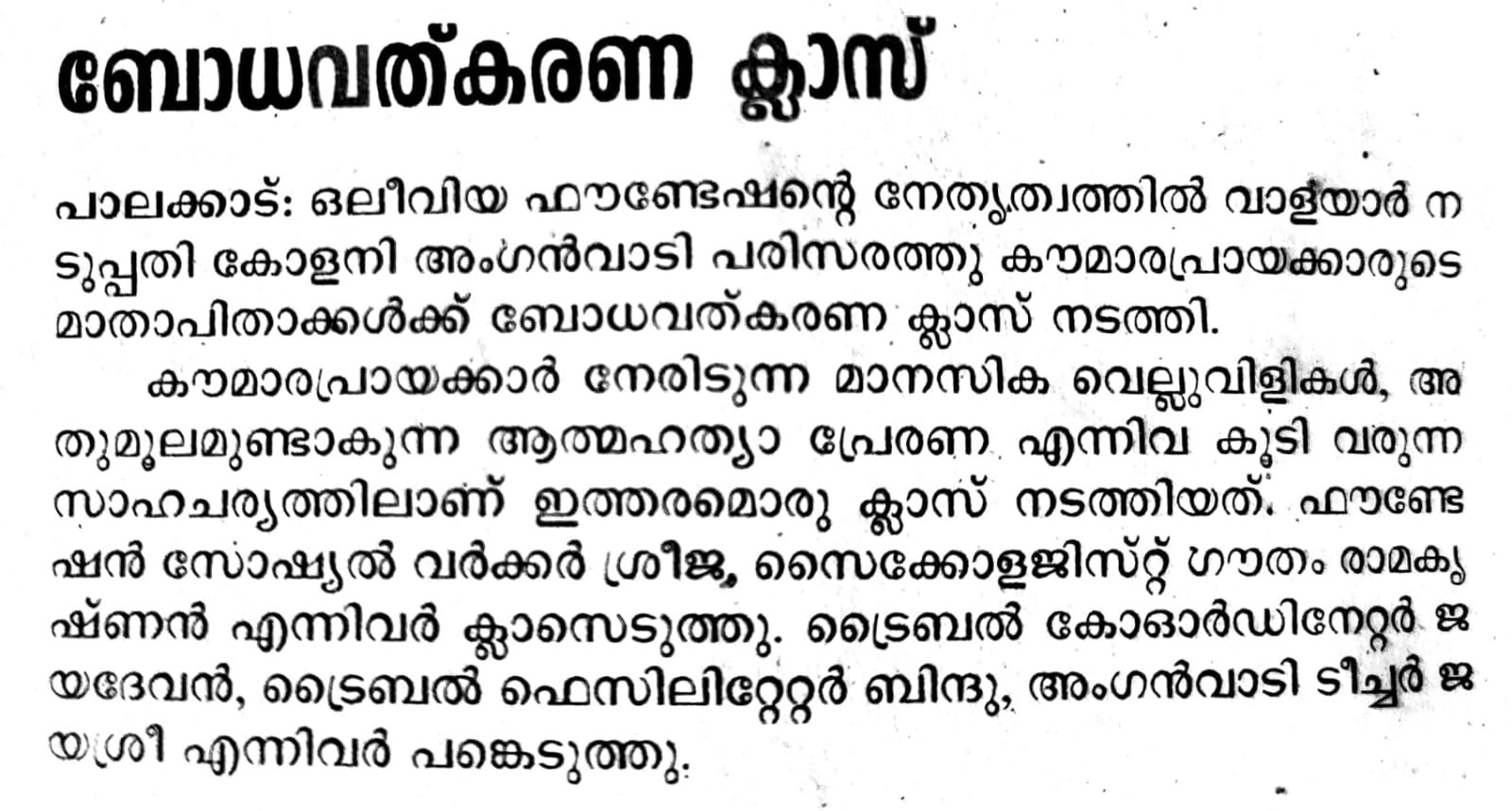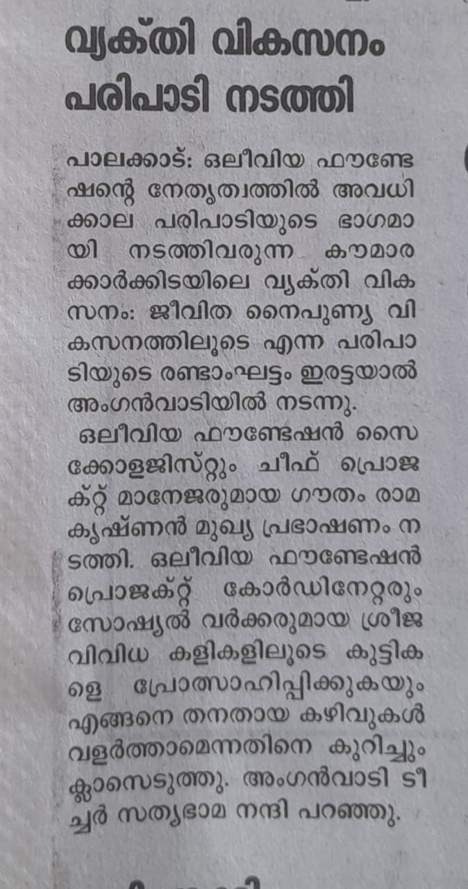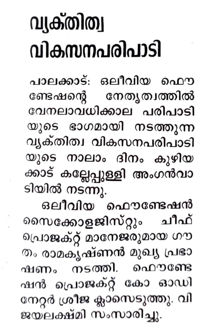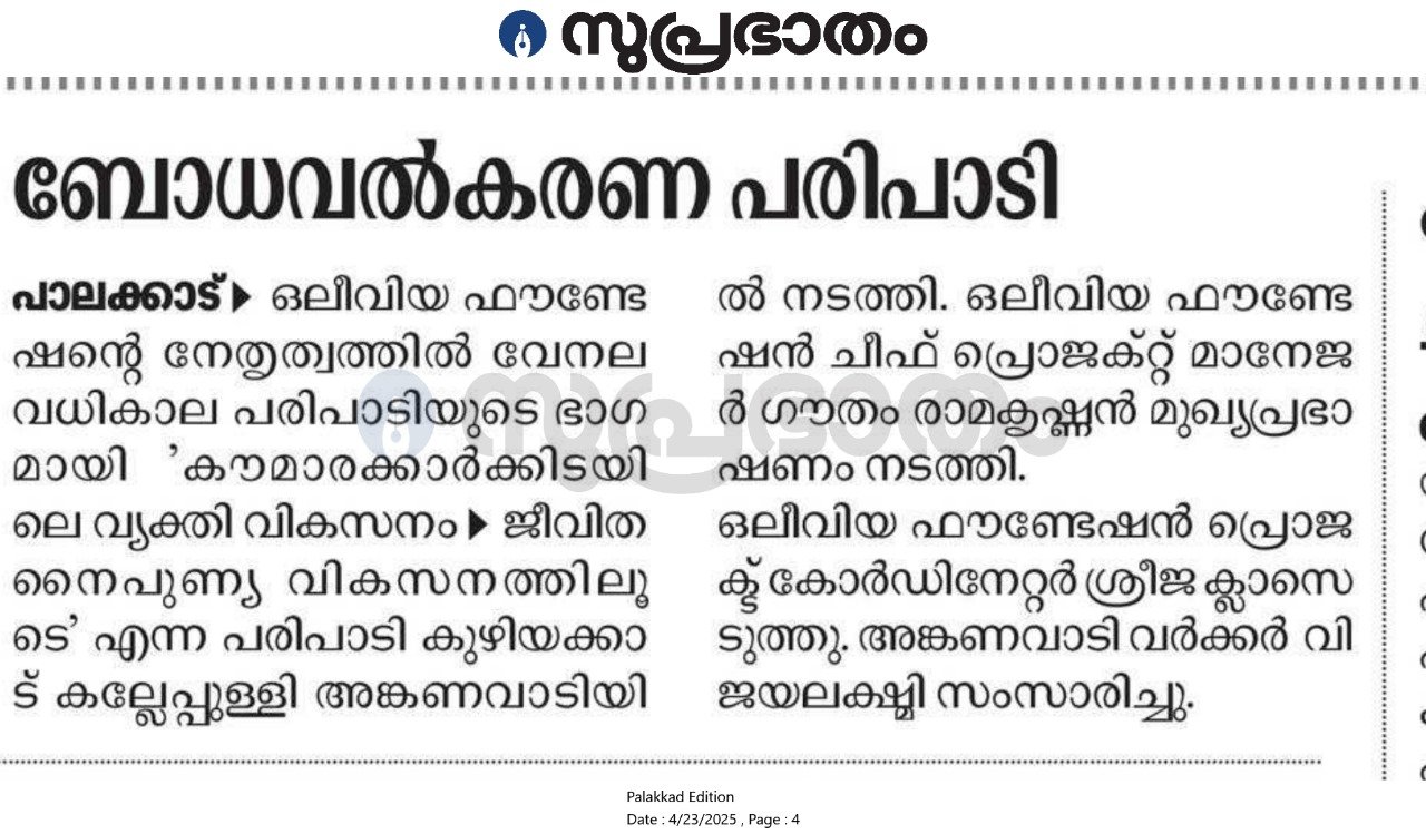 Rise with Life Skills- Session at Polakkad Anganwadi News