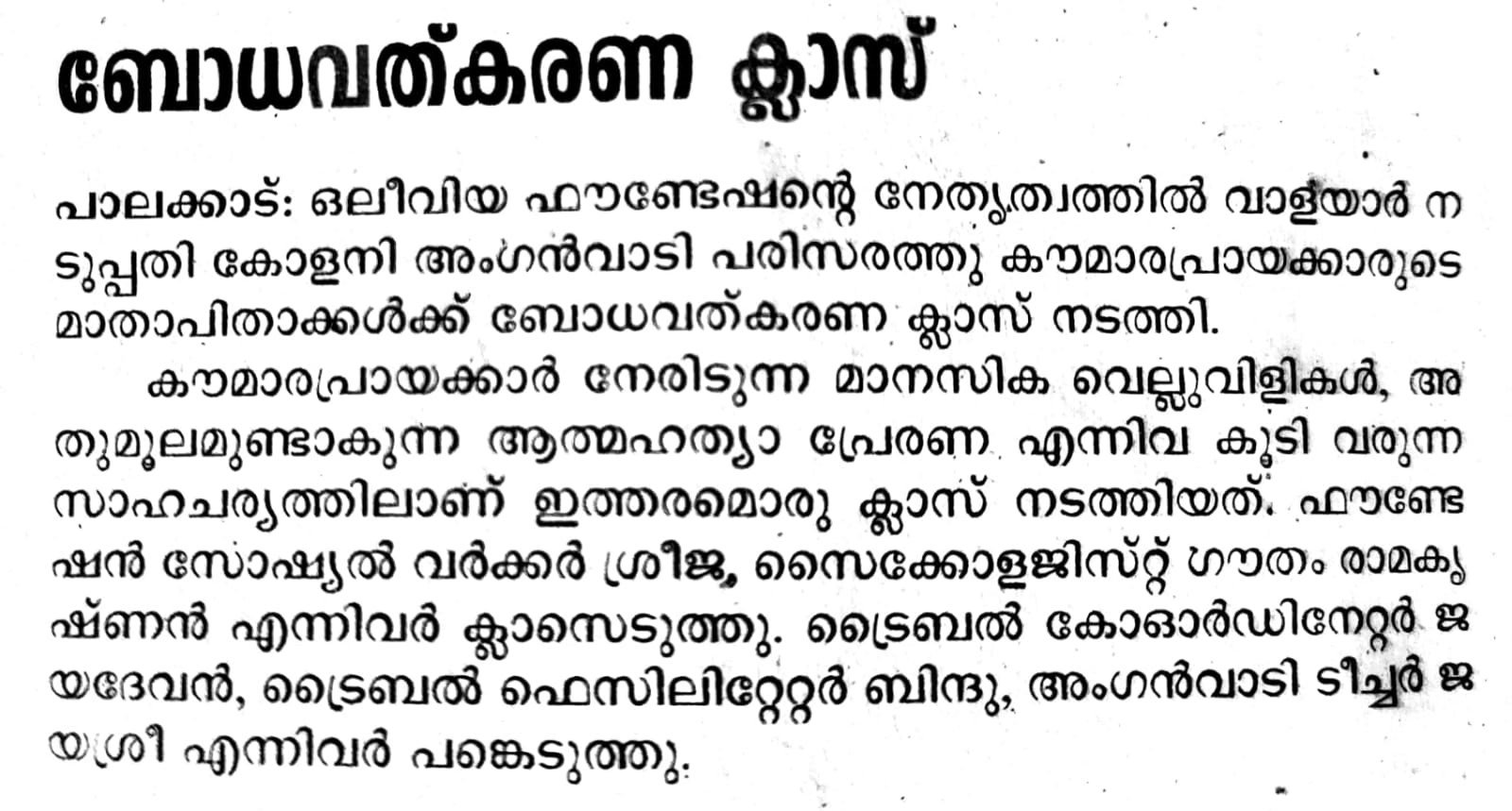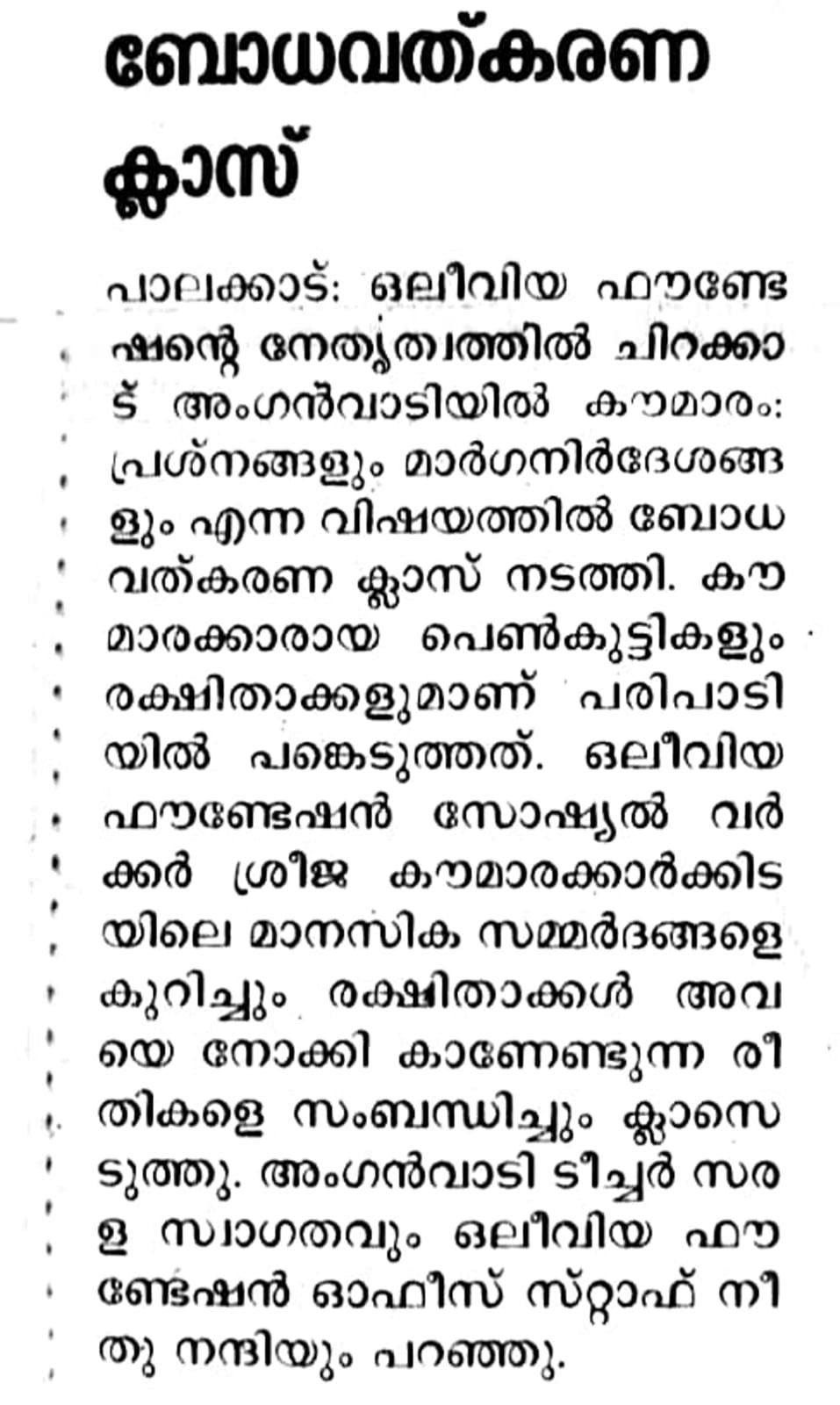 Empowering Adolescents through Awareness at Kuzhikkad Anganwadi
