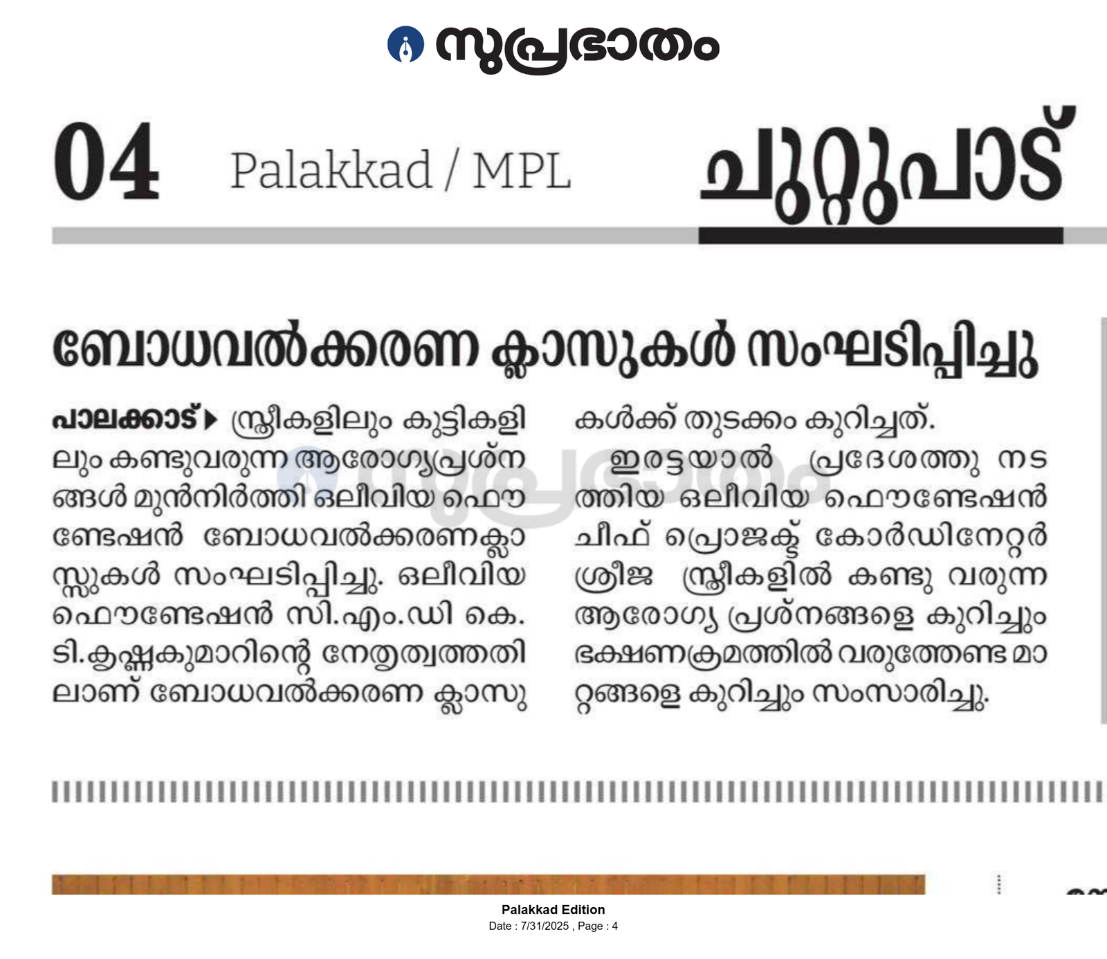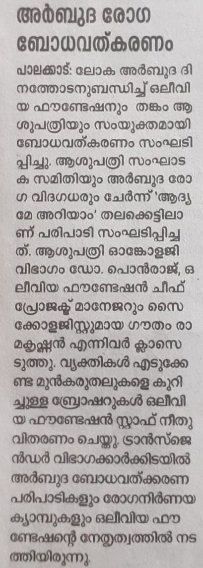 Oleevia Foundation Strengthens Cancer Awareness on World Cancer Day