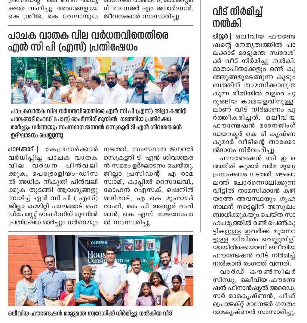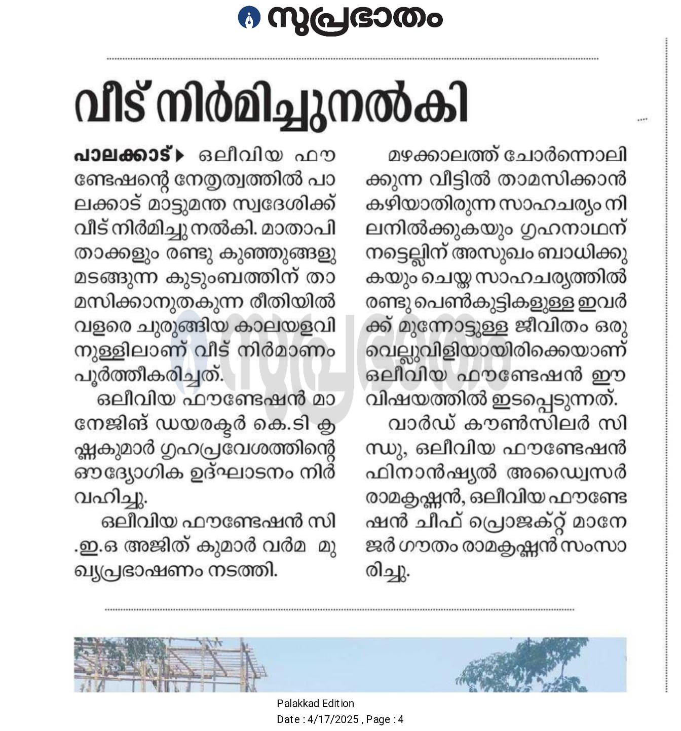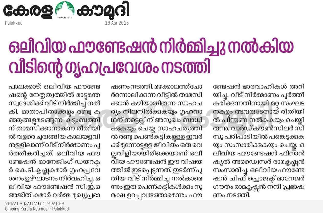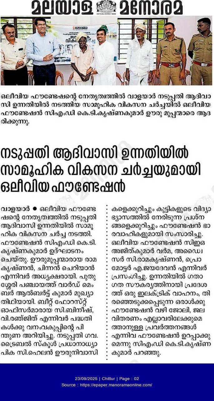 Oleevia Foundation Extends Insurance Support to Theatre Artists of Thrissur
