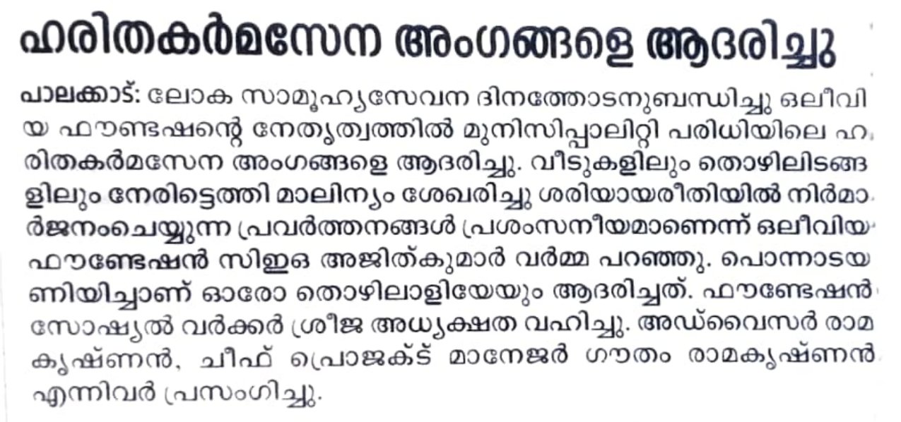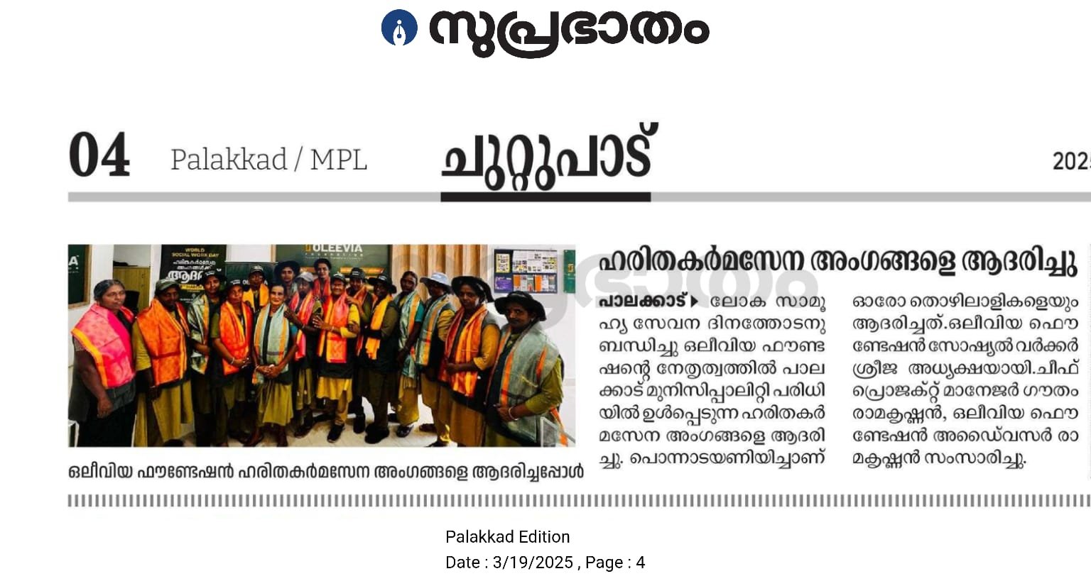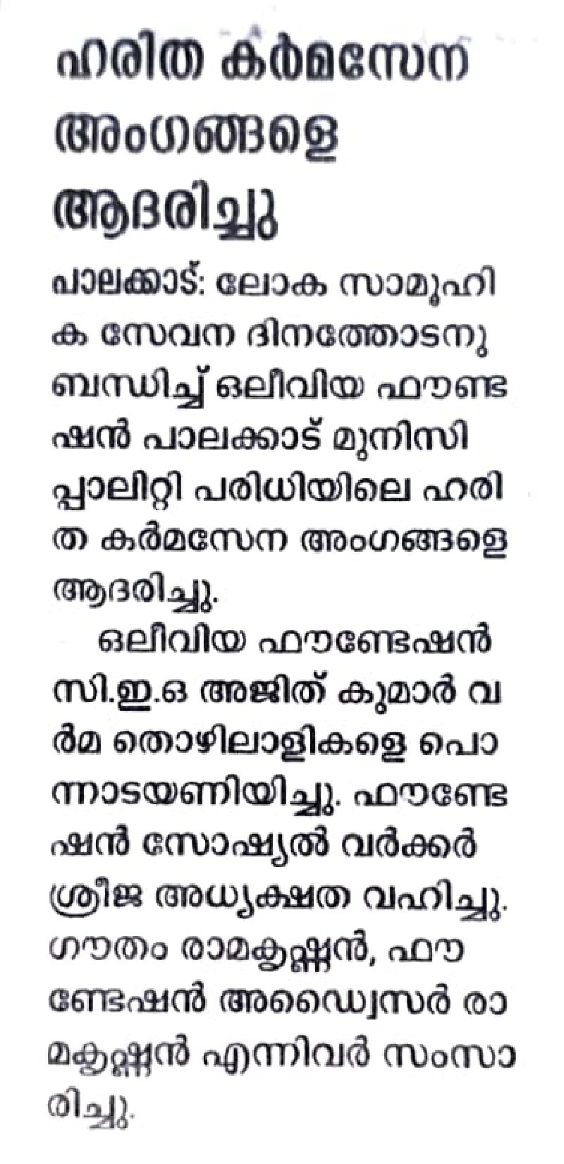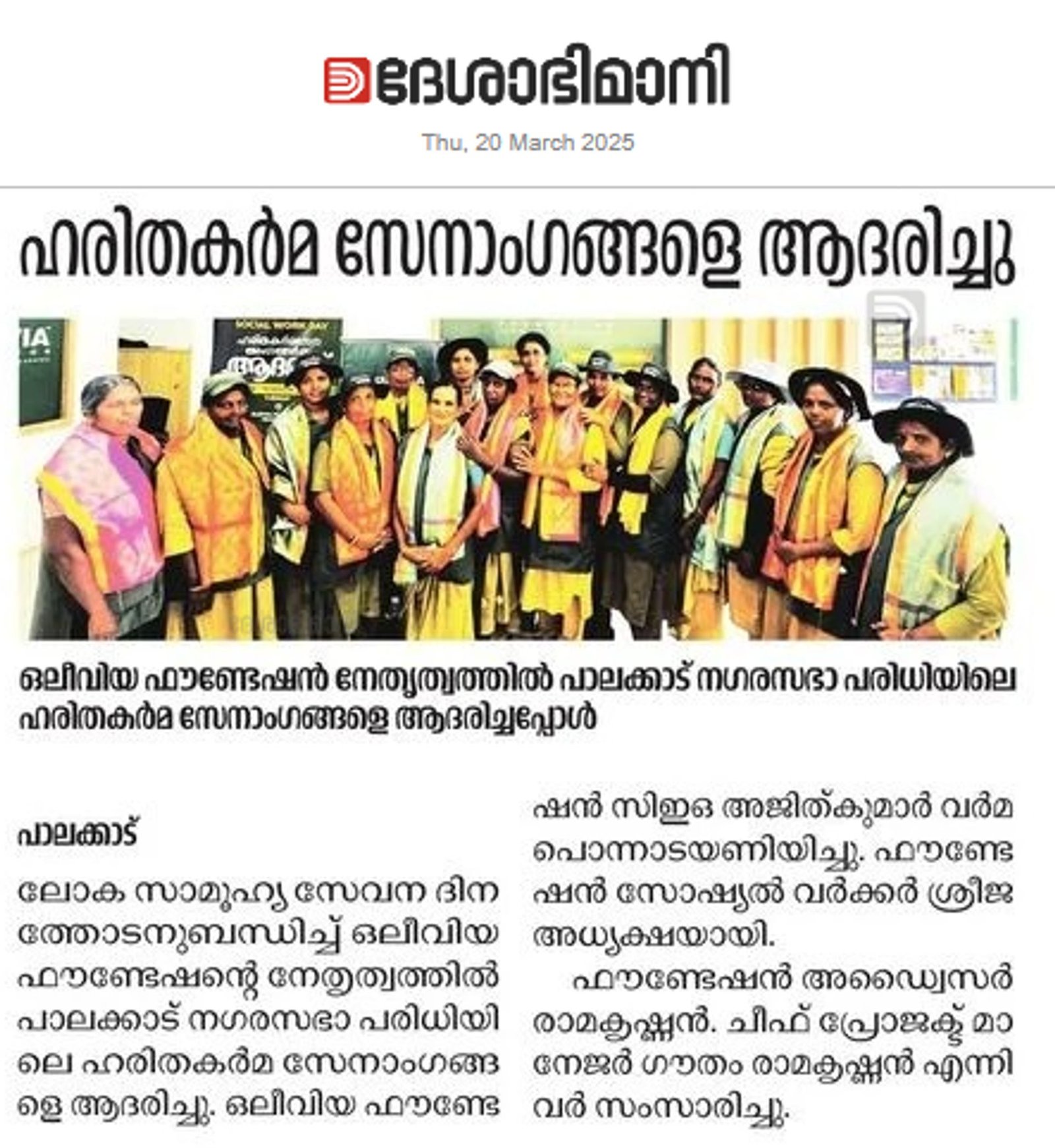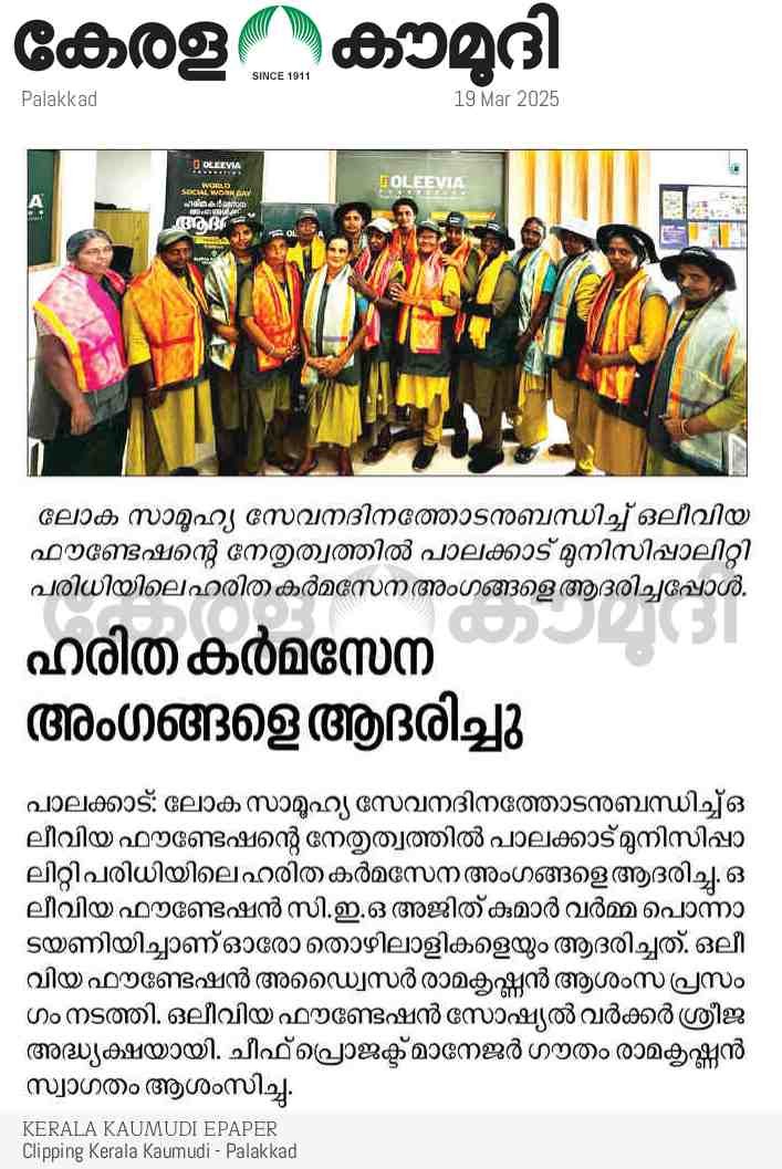Oleevia Foundation Honors Harithakarma Sena on World Social Work Day