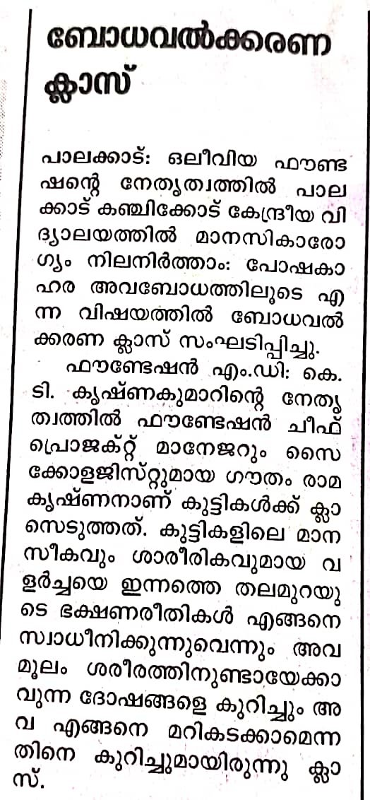 “Food for Thought” Nurturing Healthier Minds at Erattayal